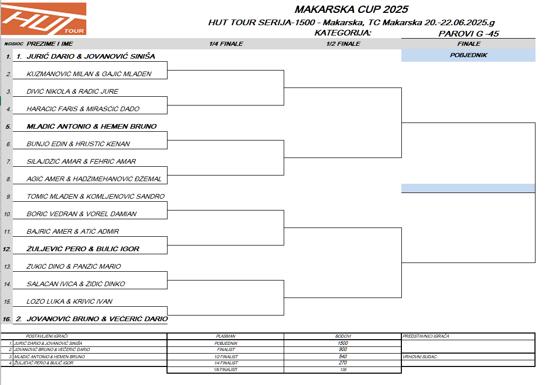 U subotu nas očekuje nastavak Makarska Cupa 2025, uz mečeve u svim kategorijama osim mix parova, koji će svoje natjecanje završiti 1. dana turnira. Prvi mečevi počinju već u 9:00 sati na svih devet terena TC Makarska, a napetost i uzbuđenje rastu kako se približavamo završnici turnira.
